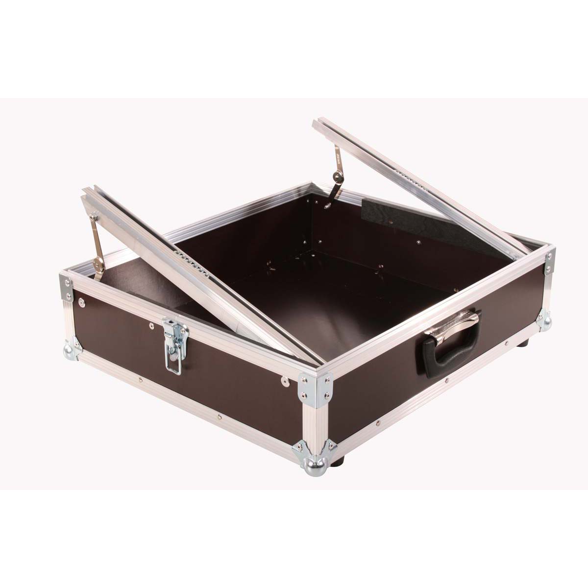 Bei 19″-Koffern empfiehlt es sich, 2 HE größer zu wählen, um ausreichend Platz für die Anschlüsse und die Verkabelung des Mixers zu haben.