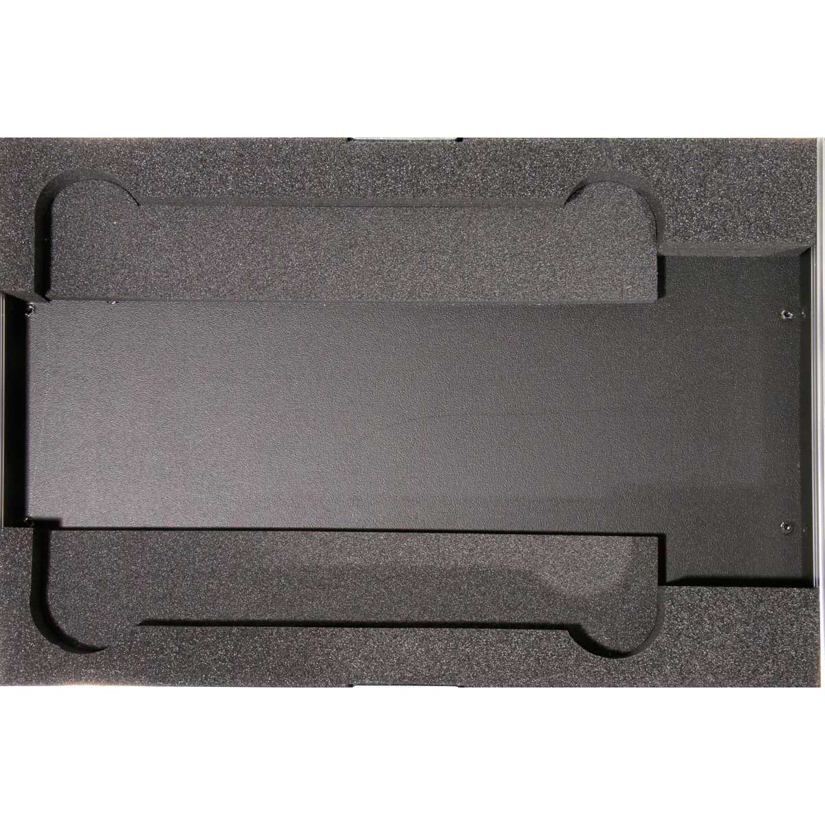 Das Gerät kann direkt im Case betrieben werden – alle Anschlüsse bleiben bei geöffnetem Deckel frei zugänglich. Ein integrierter 10 cm Kabelkanal sorgt für eine saubere und sichere Kabelführung. Die maßgefertigte Schaumstoffpolsterung im Boden und im Deckel gewährleistet einen festen Sitz und schützt den Player zuverlässig vor Stößen und Erschütterungen.
