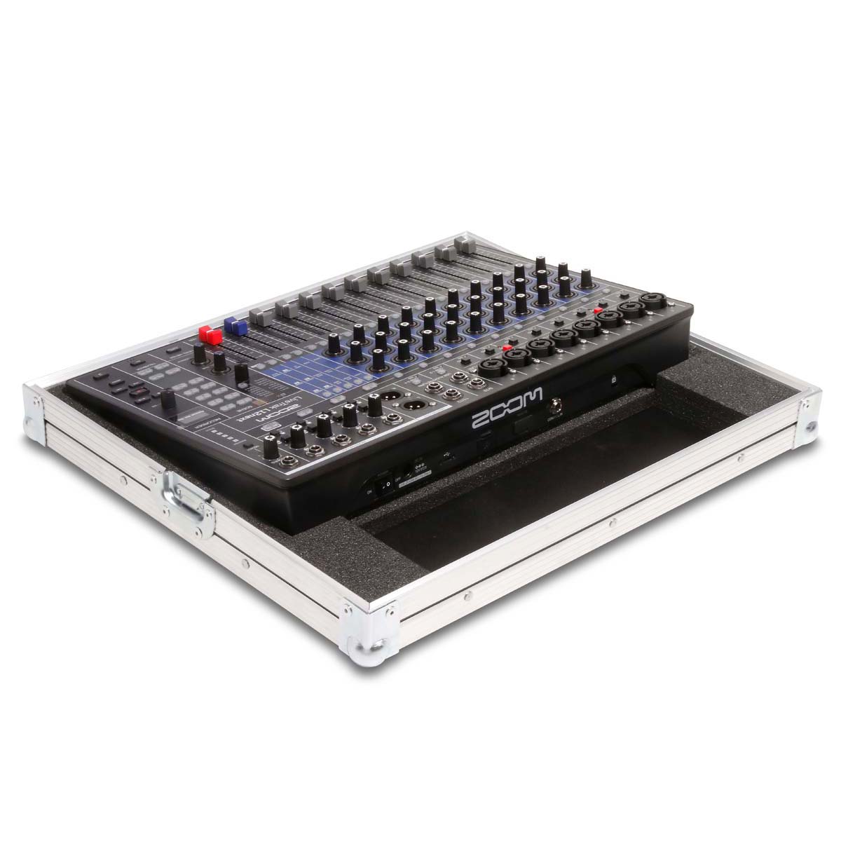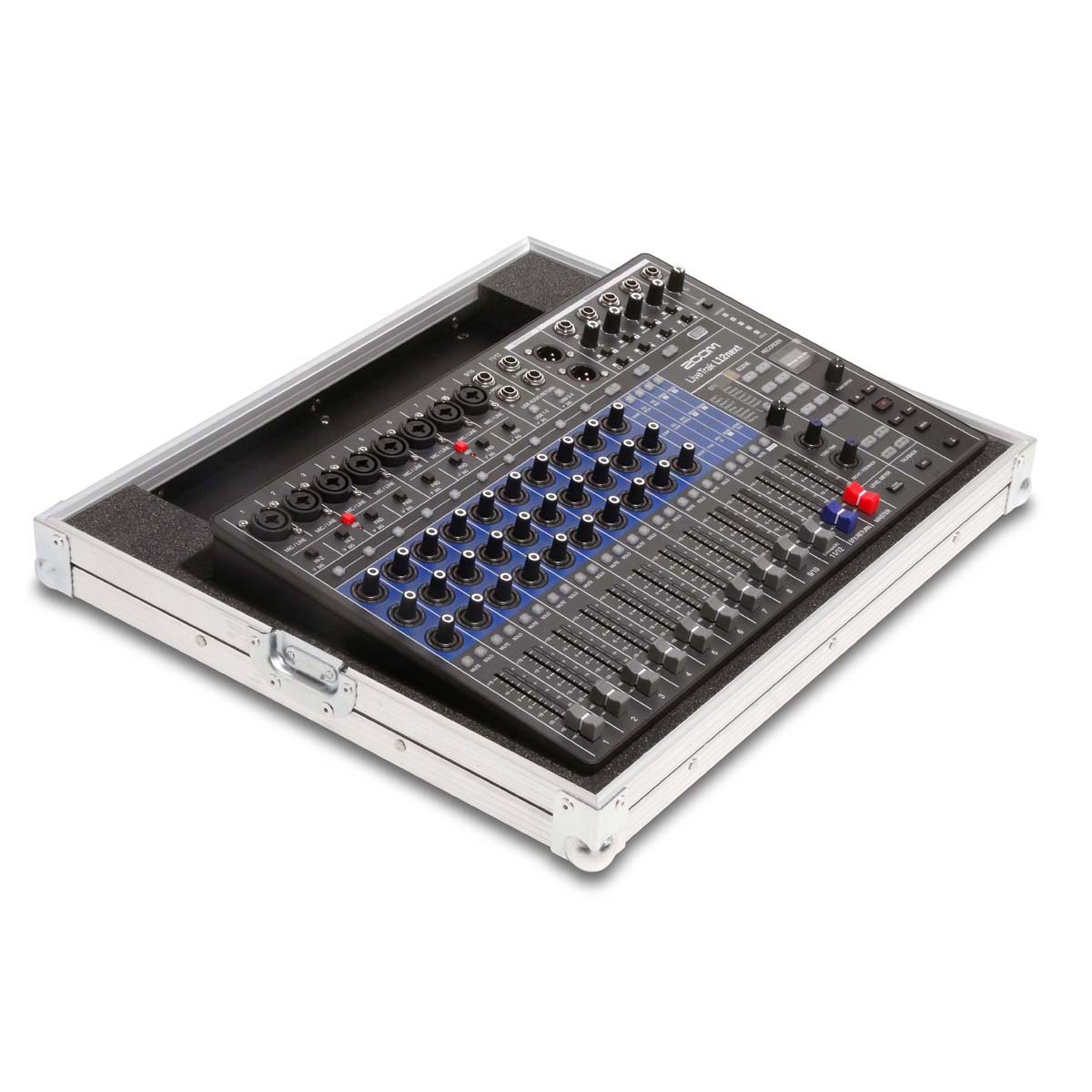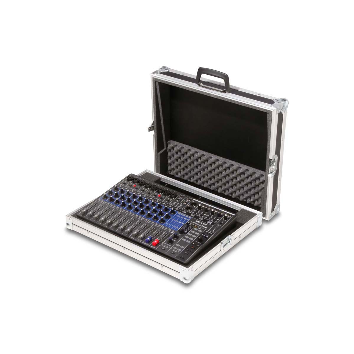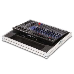 Robustes Haubencase für das Zoom LiveTrak L-12n Digitalmischpult. Das Mischpult kann im Unterteil des Cases vollständig bedient werden. Hinter dem Gerät befindet sich ein integrierter 10 cm Kabelkanal für sauberes Kabelmanagement.