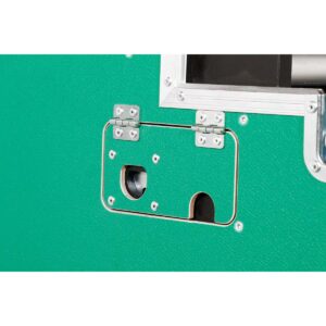 Im rechten und linken Seitenteil jeweils eine Öffnung,