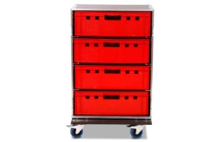 Die vier Kunststoffkästen E2 kann man zusätzlich mit einem Trennwandset unterteilen (als Zubehör siehe 328318 bzw. 587001).