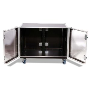 This high-quality 14U double 19-inch rack impresses with its robust construction and practical features.