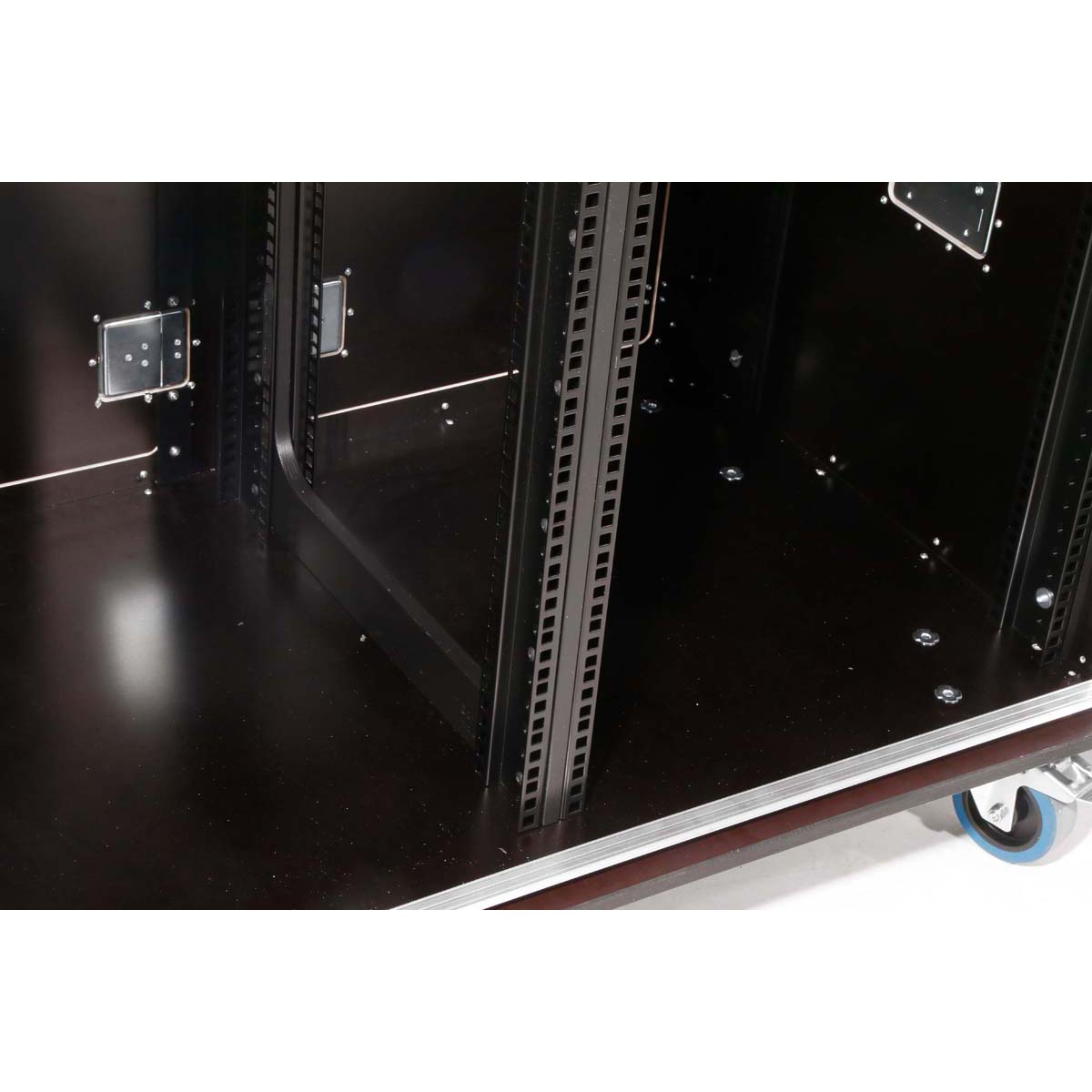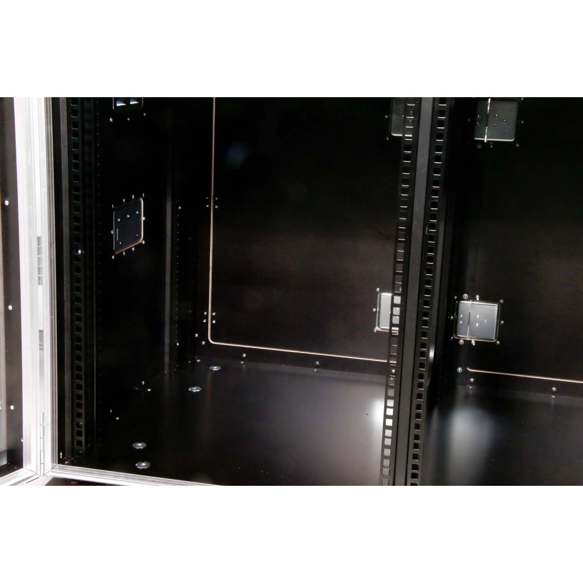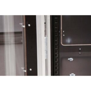 The double-punched IT rack rails at the front and rear are equipped with cage nuts and allow for flexible equipment mounting.
