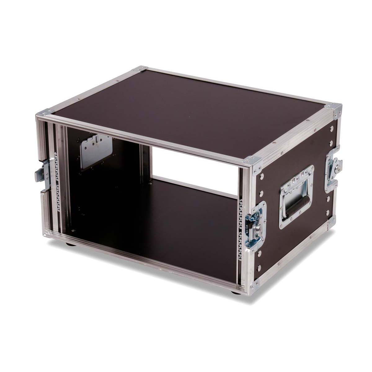 Compact and robust 19″ rack for live applications – ideal for mobile use on stage or in the studio. With a usable depth of 37 cm between the rack rails, it offers ample space for standard rack equipment. Two removable covers allow quick access from the front and rear. Stepless rack rails with rubber edging at the front and rear ensure a secure hold and protect the installed equipment. Made in Germany.