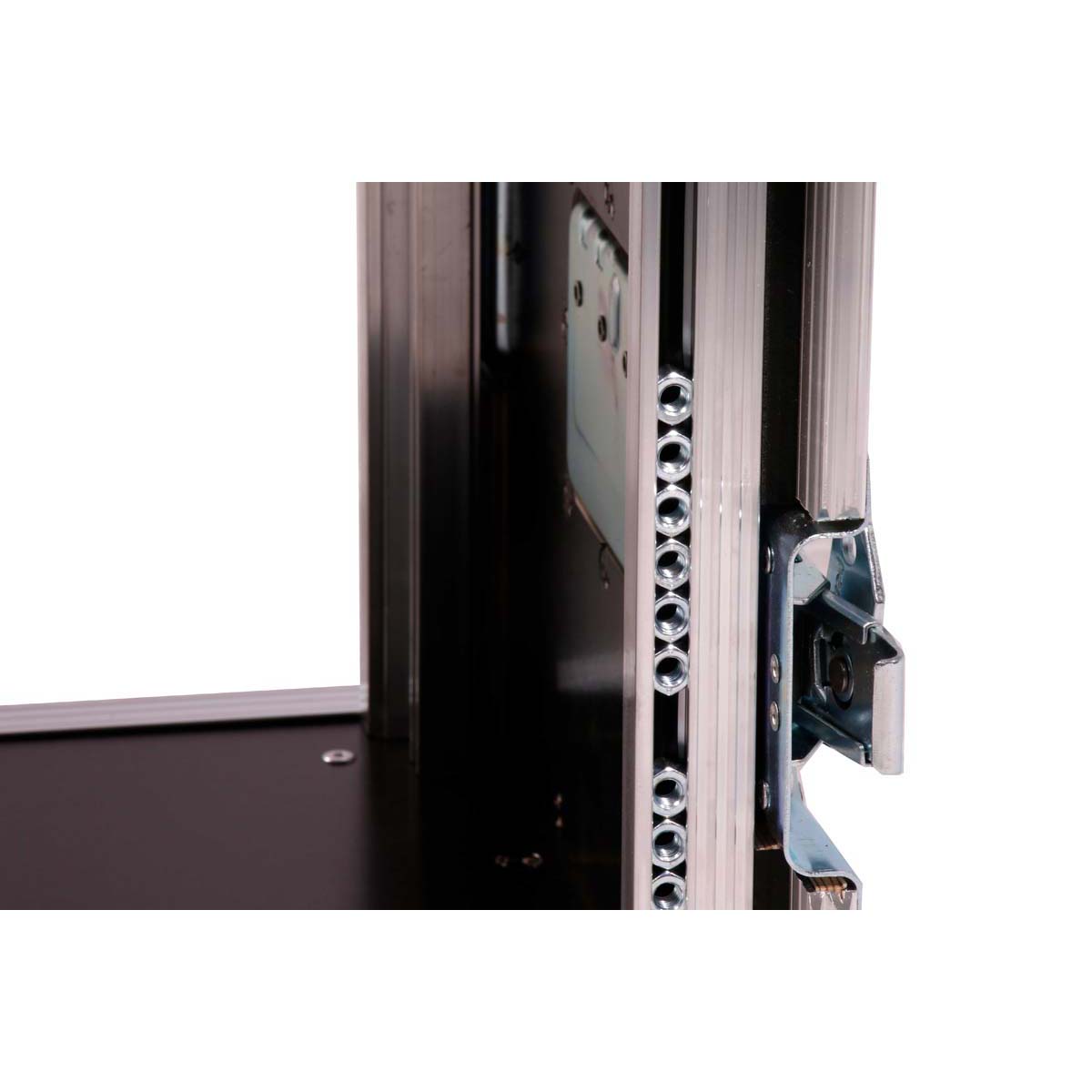 – Stepless rack rails with rubber edging at the front and rear, including screw set