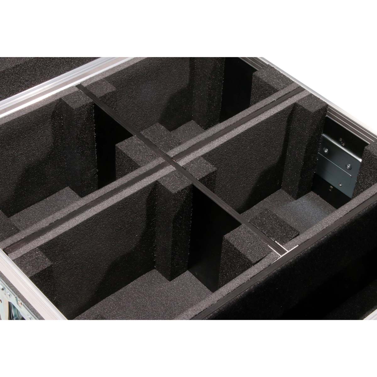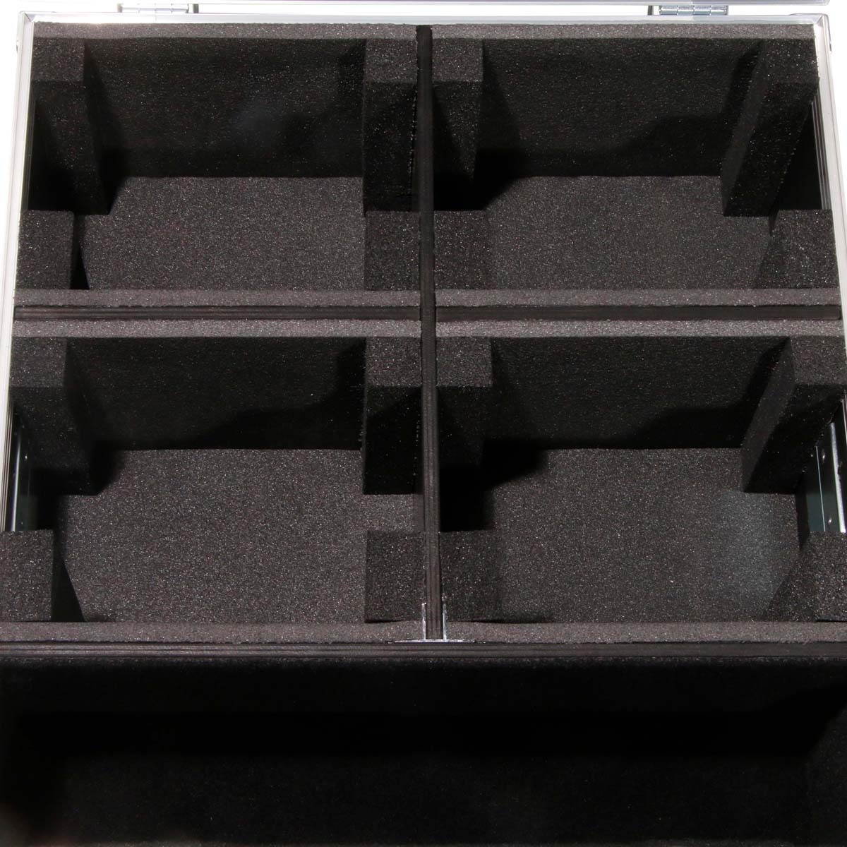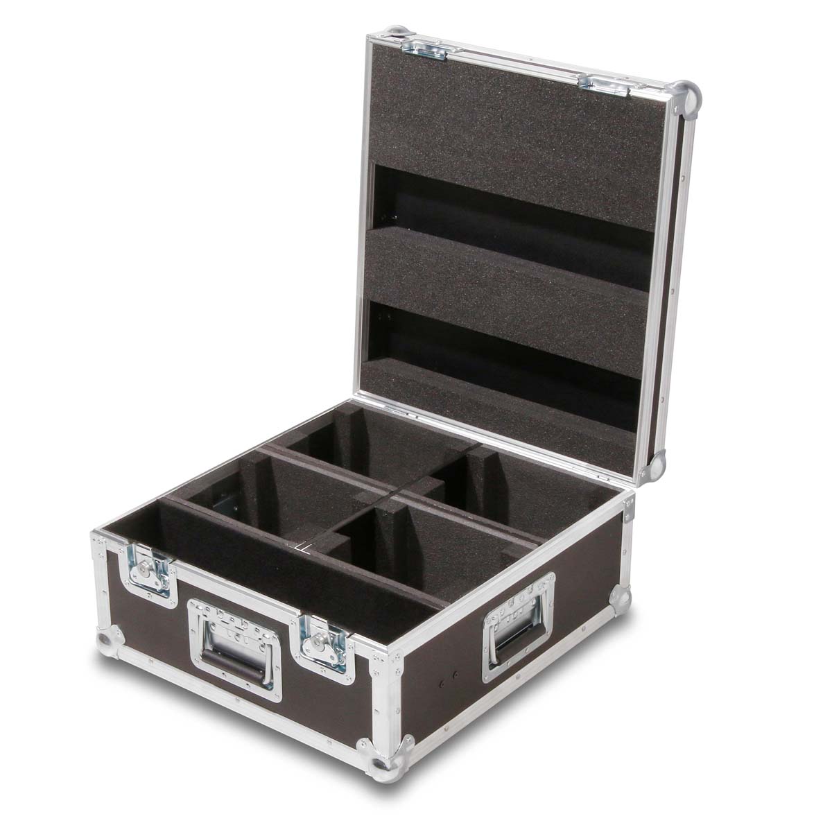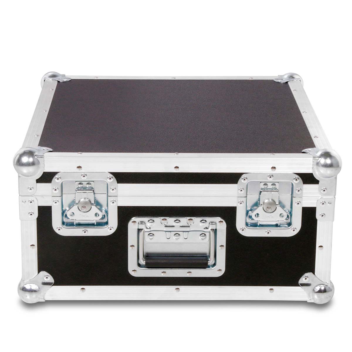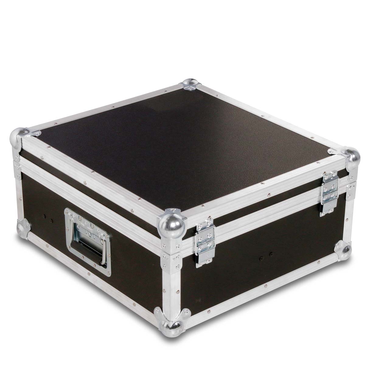Made of high-quality plywood with a durable black PVC coating, the case offers optimal protection for the rigors of touring. Steel ball corners and surrounding aluminum profiles ensure stability and longevity. Ideal for safe transport and professional storage in the event and touring industry.