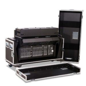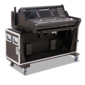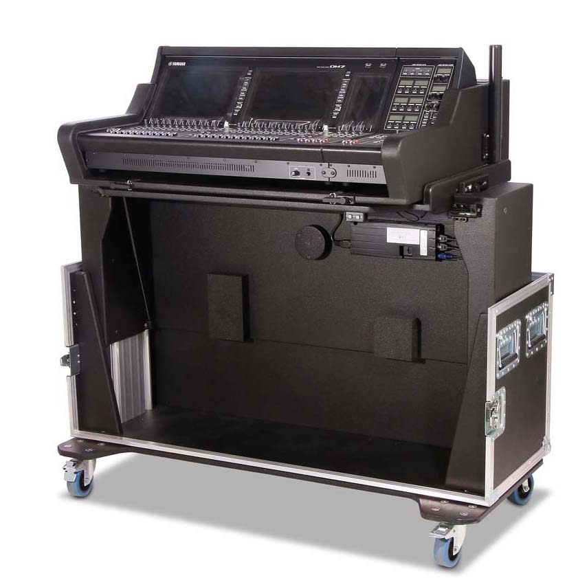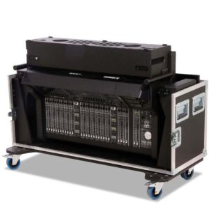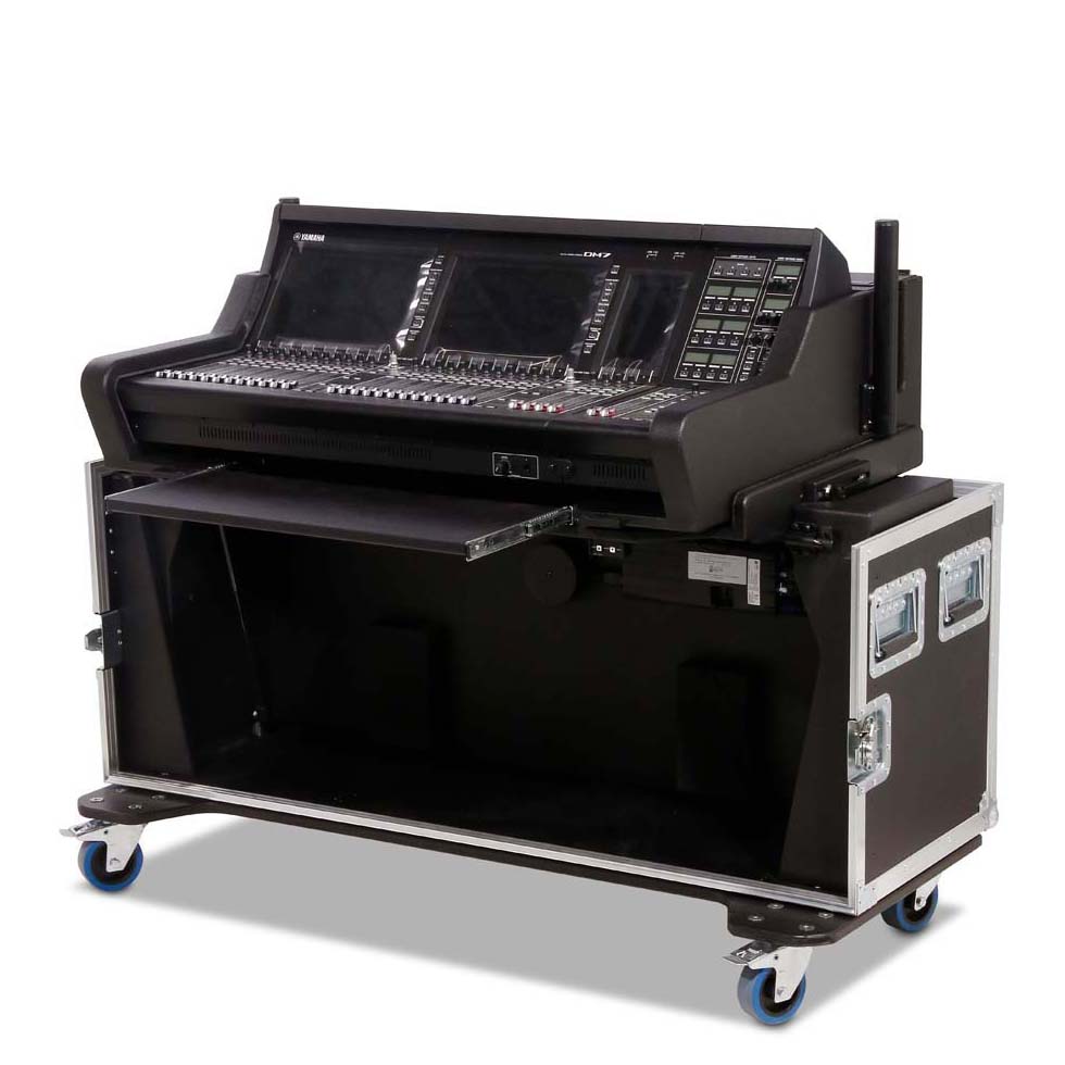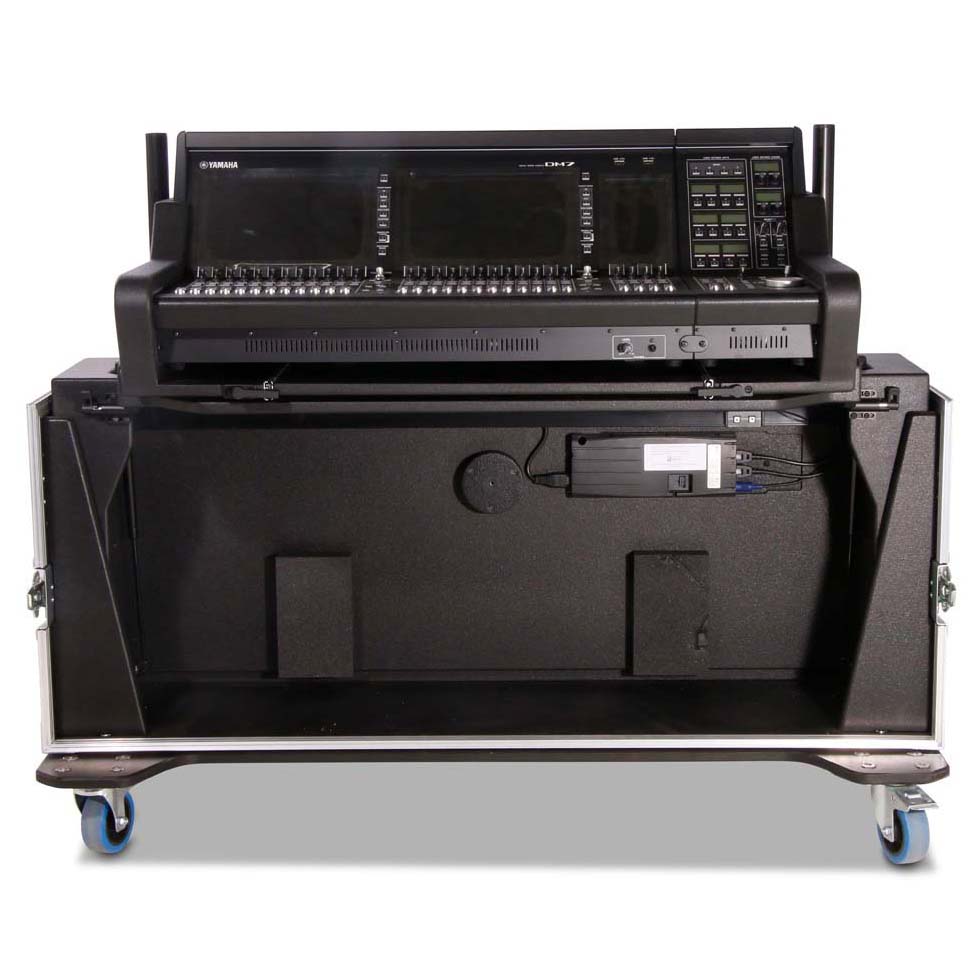 Robustes und durchdachtes Flightcase für das Yamaha DM7 Mischpult inklusive Extension – ideal für den professionellen Touring- und Eventeinsatz. Das Case aus 9 mm schwarzem Multiplex-Holz überzeugt durch hohe Stabilität, komfortable Handhabung und eine integrierte, elektrisch höhenverstellbare Hub-Lift-Funktion.