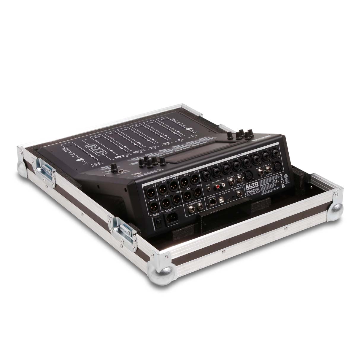 A robust and practical live cover for the Alto TMD 16 mixing console, including a functional base for immediate use in live performances.