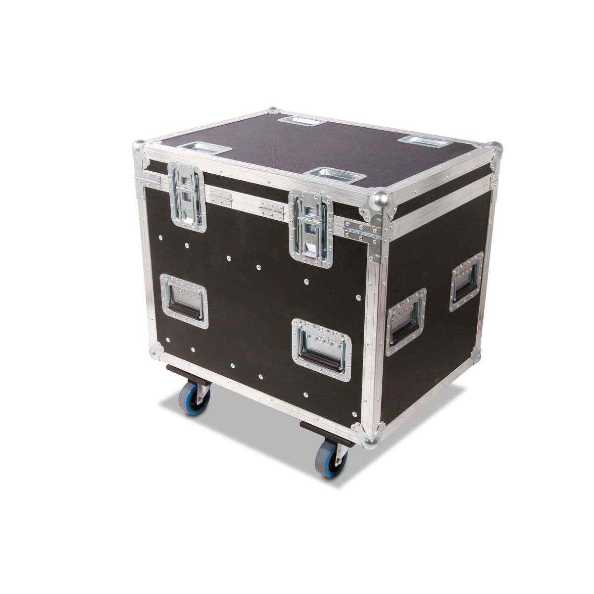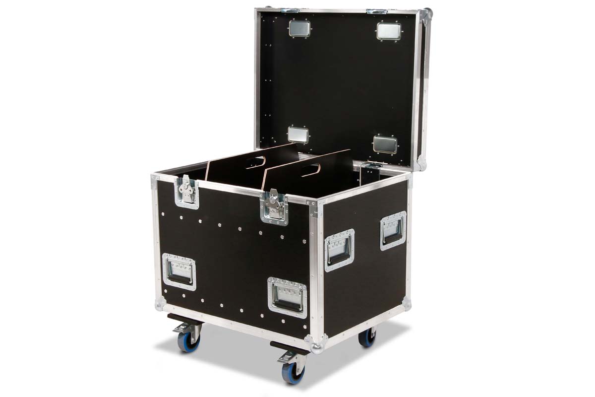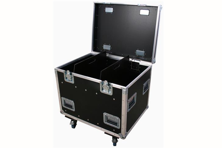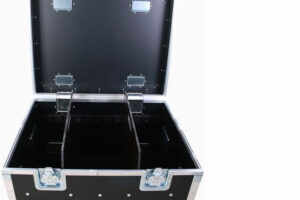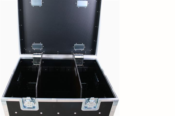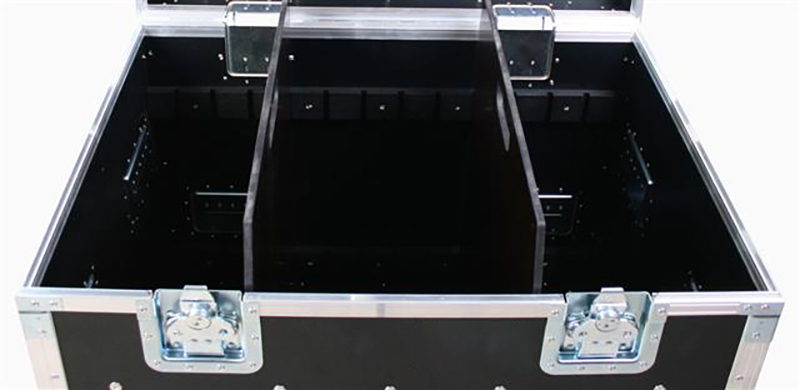 with wheel recesses, swivel casters, and two adjustable dividers.