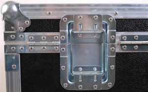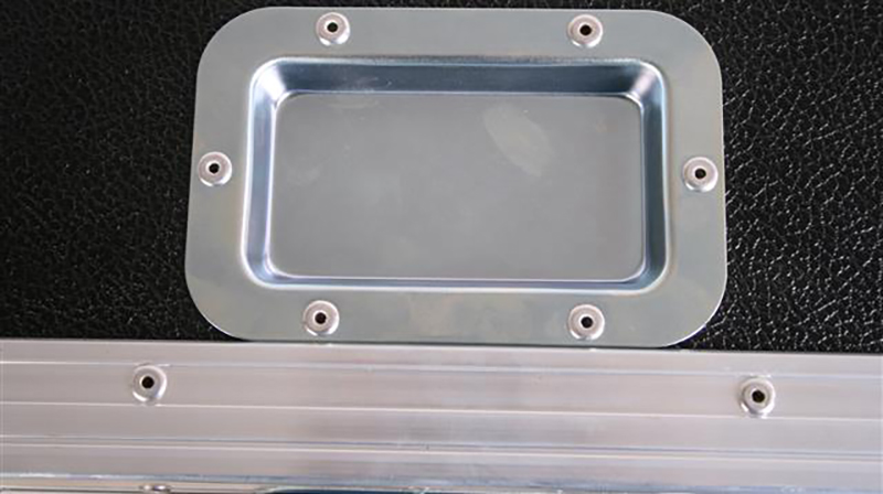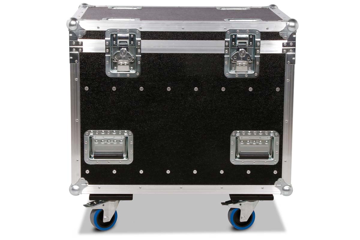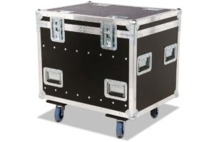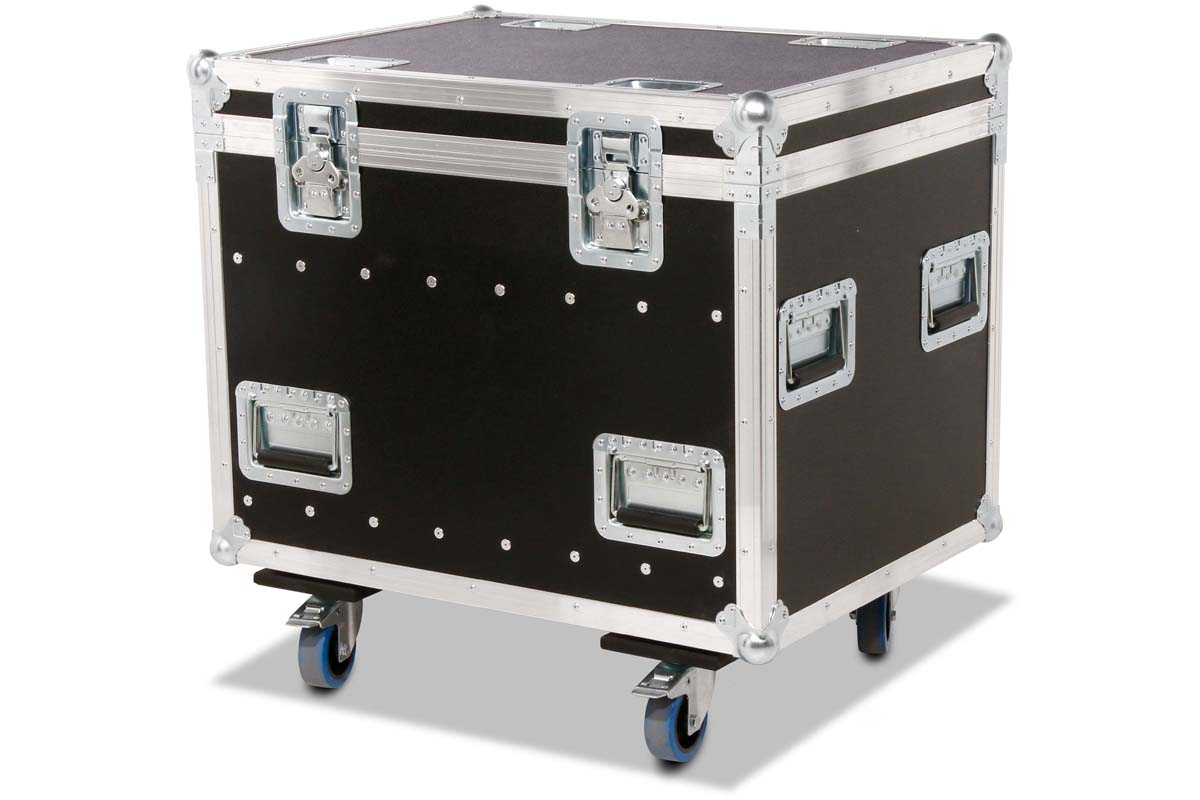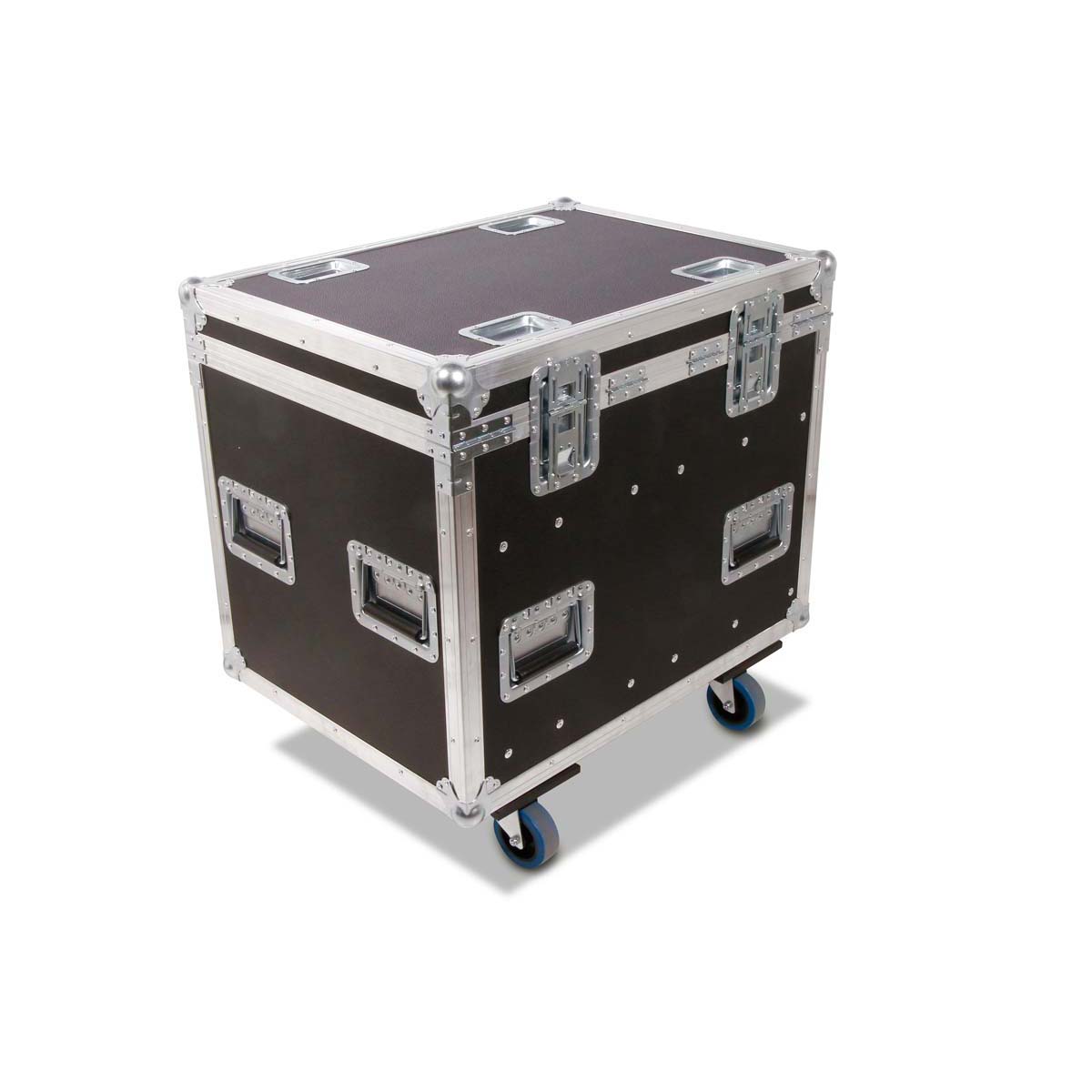 with wheel recesses, swivel casters, and two adjustable dividers.