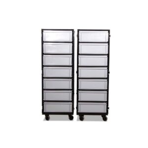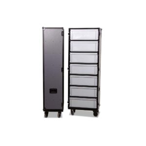 This high-quality professional cabinet case was developed for maximum efficiency and mobility in professional applications. Thanks to its well-designed construction, seven Rako Euro containers can be accommodated on each side – providing a total of 14 accessory boxes.