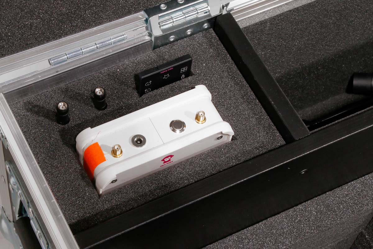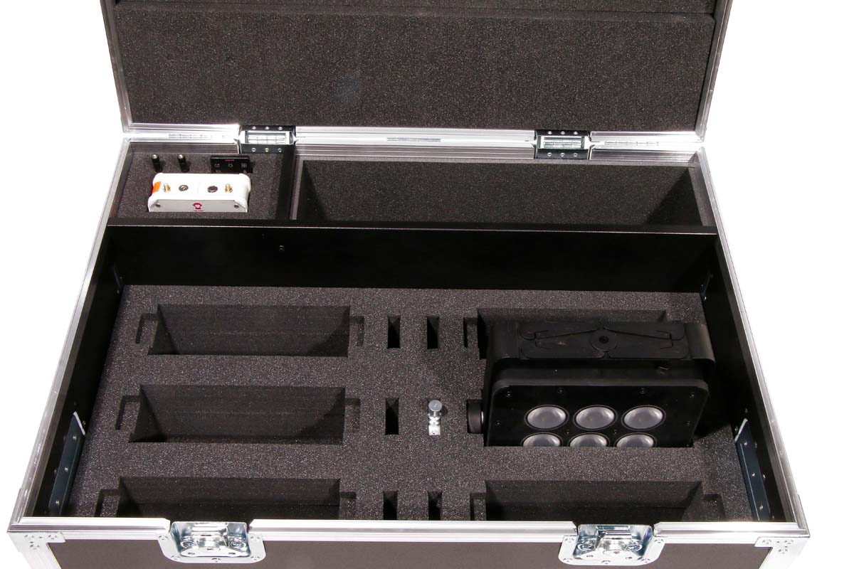 The case is designed to hold six ApeLabs Marvel Spots, including ApeLabs Connect, antennas, and remote control.