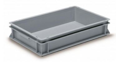 Robust and stackable accessory box in Euronorm format, ideal for the organized storage and safe transport of equipment and small parts.