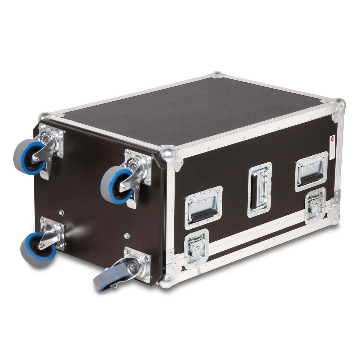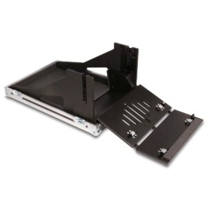 made of black polyboard with a 15cm deep docking compartment and braked swivel casters.