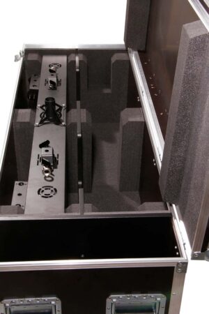 Un compartiment de 15 cm à droite pour les accessoires et les roulettes.
