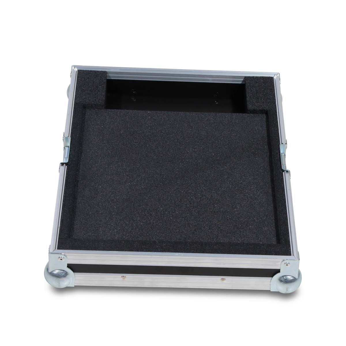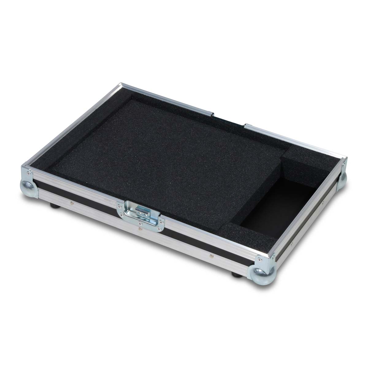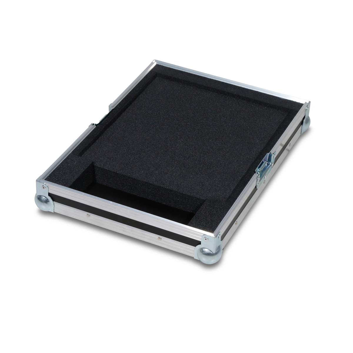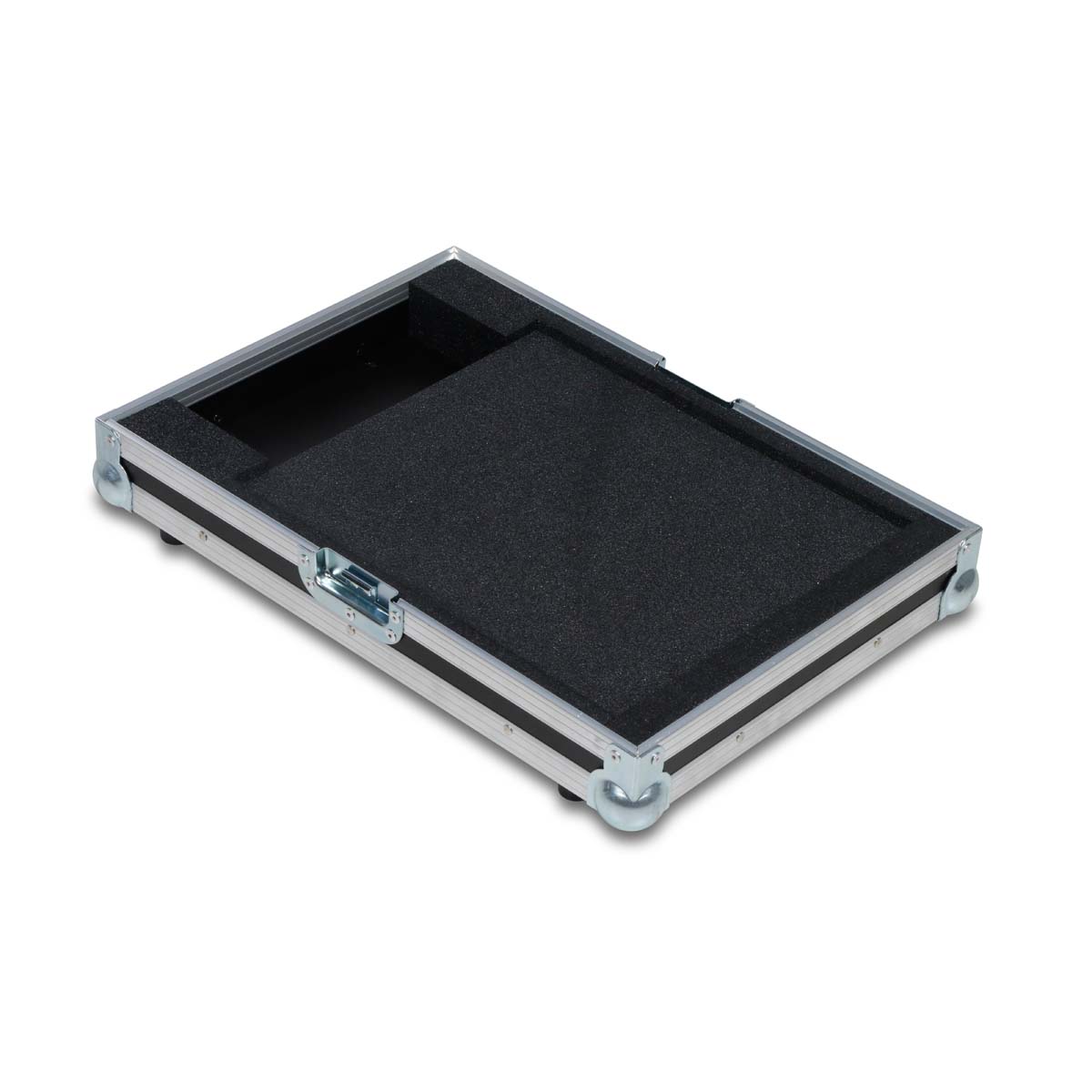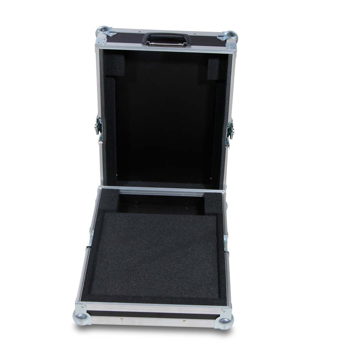 Deux fermetures papillon de taille moyenne garantissent un verrouillage sécurisé, tandis qu’une poignée de transport robuste facilite le transport. Quatre pieds en caoutchouc assurent une adhérence optimale. À l’intérieur, un rembourrage en mousse sur mesure protège efficacement des chocs et des vibrations.